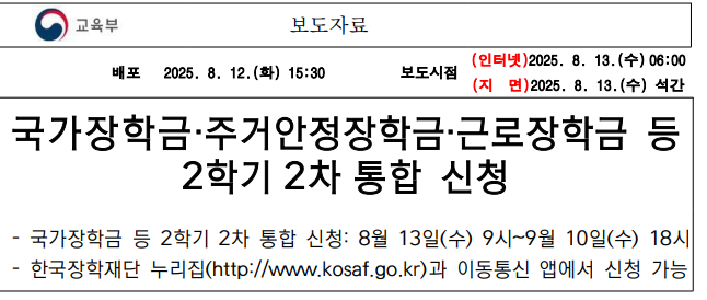 신청은 한국장학재단 홈페이지 또는 모바일 앱을 통해 진행됩니다. 마감 직전에는 서버가 혼잡해 접속이 어려울 수 있으니, 여유 있게 미리 신청하는 것이 좋습니다.